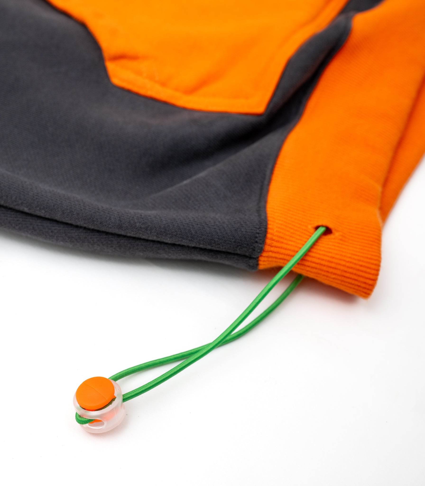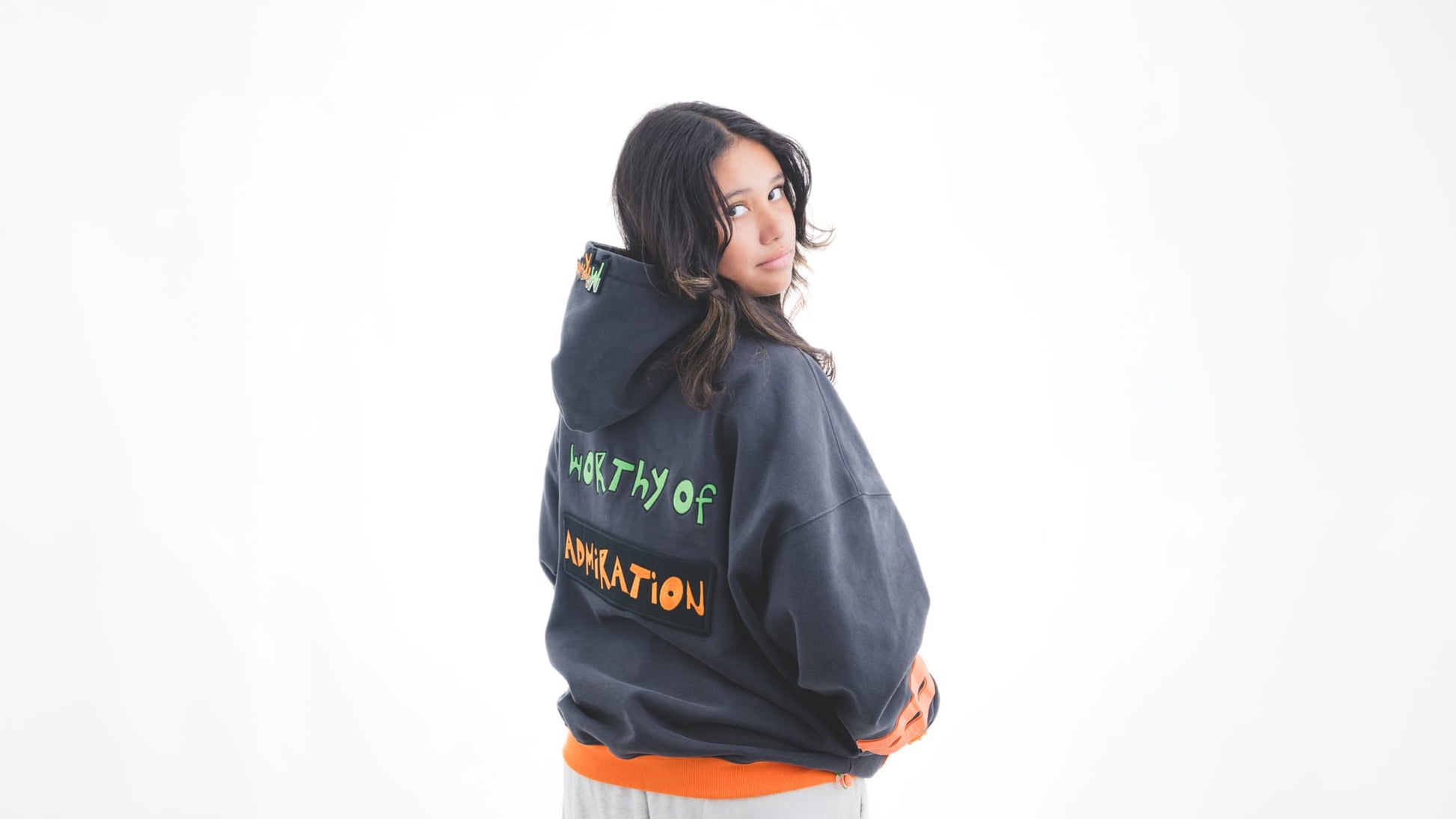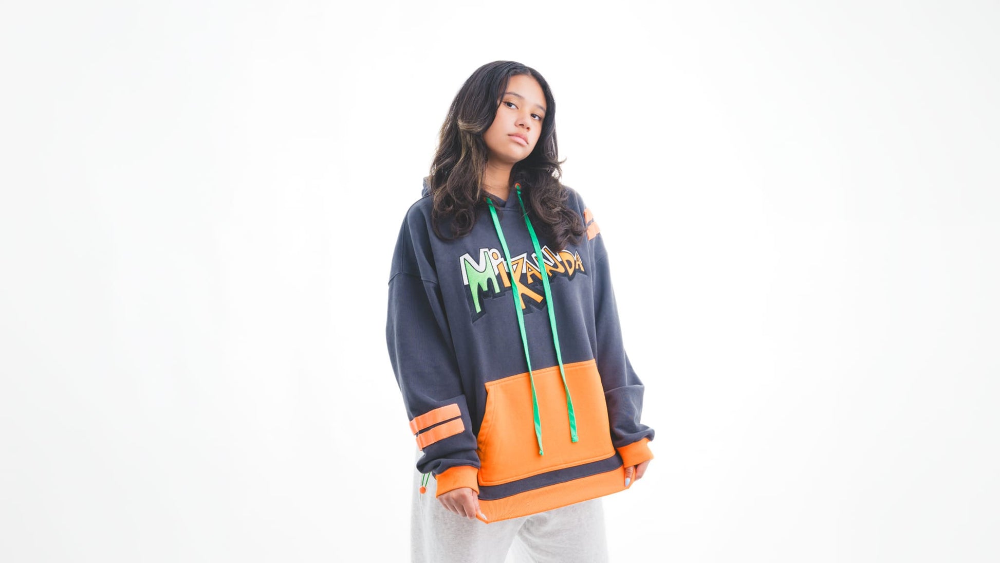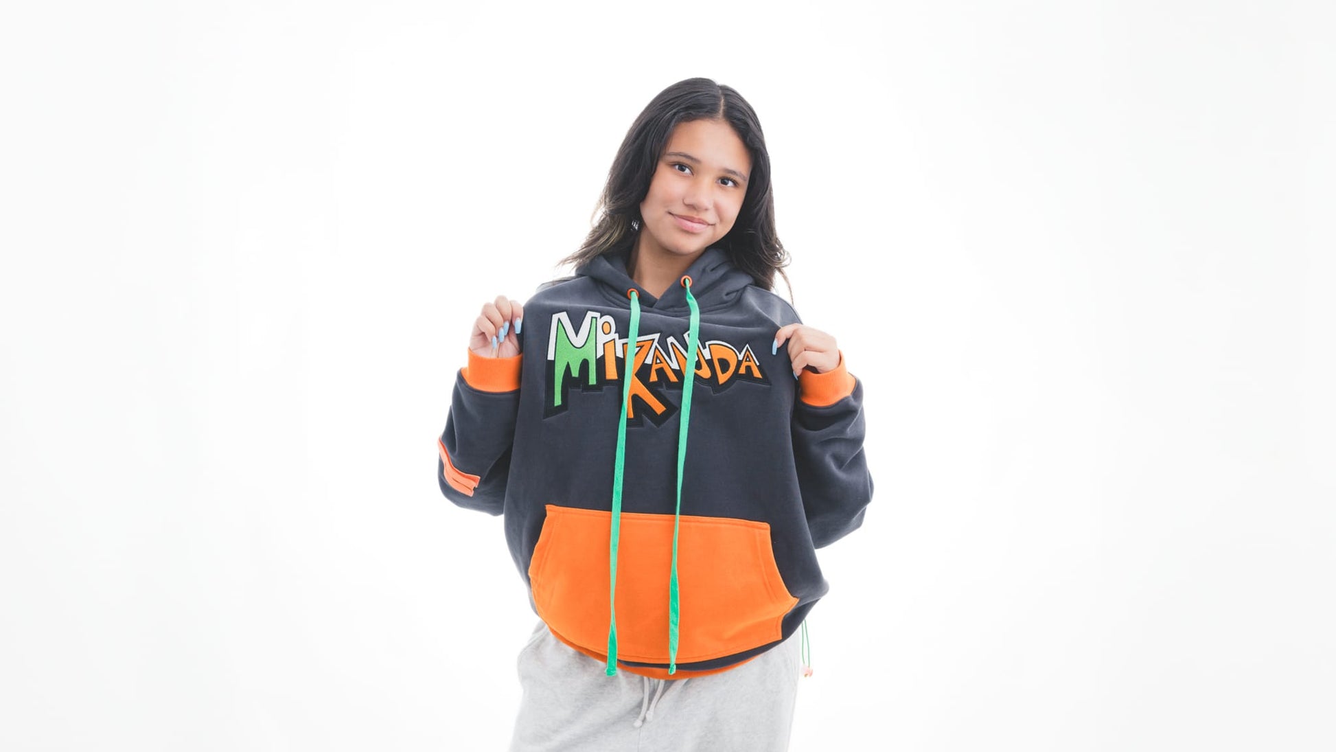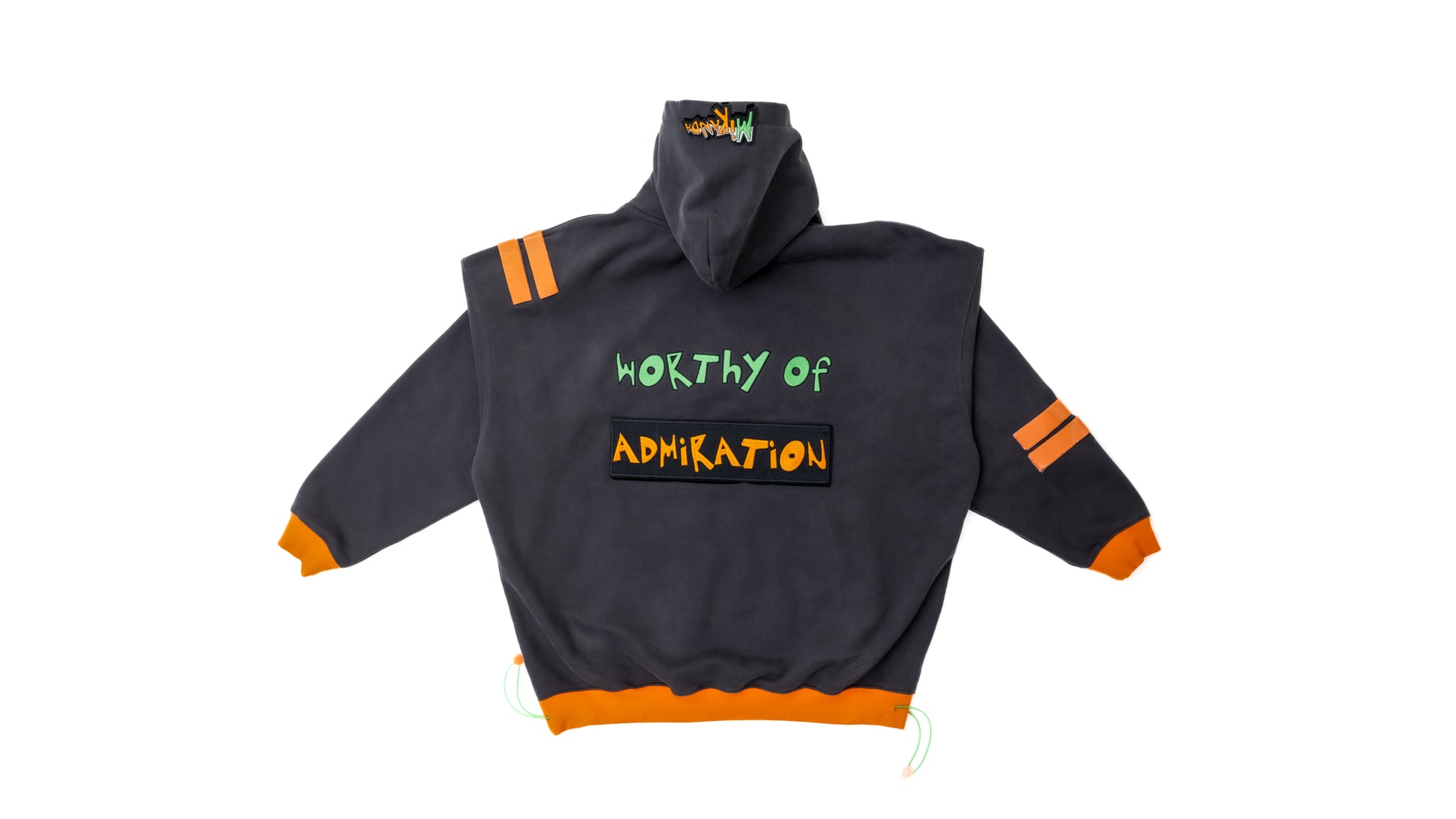 This slightly oversized hoodie features a heavy 500gsm core to provide additional body and structure. The embroidered Miranda logo on the front was designed by me with my own custom font and colors that combine the fun and bright elements of streetwear with style. A floating orange pocket contributes to this bold statement.